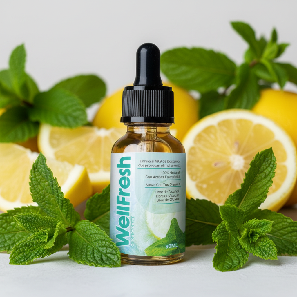 Descubre WellFresh, las gotas 100% naturales que eliminan el mal aliento desde la RAÍZ y te brindan una frescura duradera. 🌿